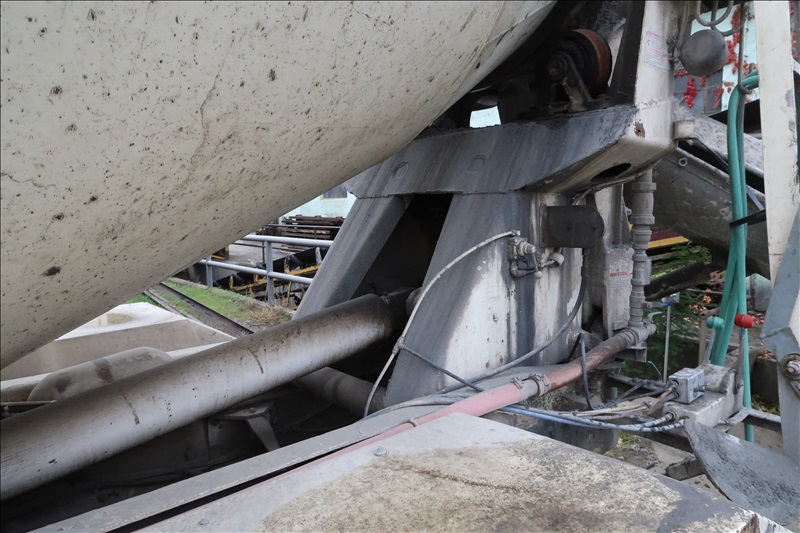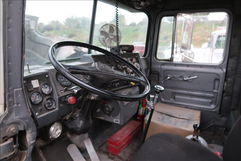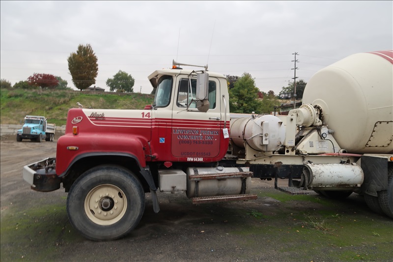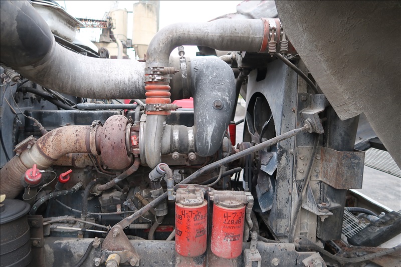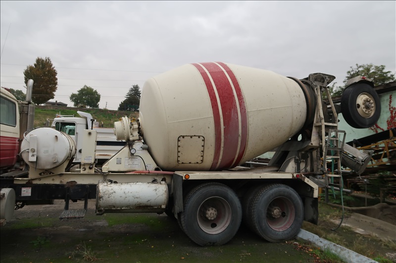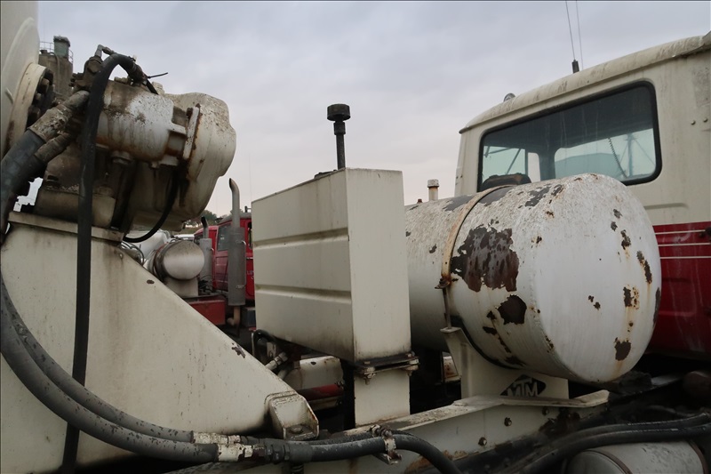 TRI-AXLE MIXER TRUCK, 6-CYL DIESEL, 13-SPD, CHALLENGE HYDRAULIC MIXER, 34,000 REARS, 17,000 FRONT, BEAM SUSPENSION, STRONG ARM SINGLE AXLE BOOSTER, WATER SYSTEM (UNIT #91)