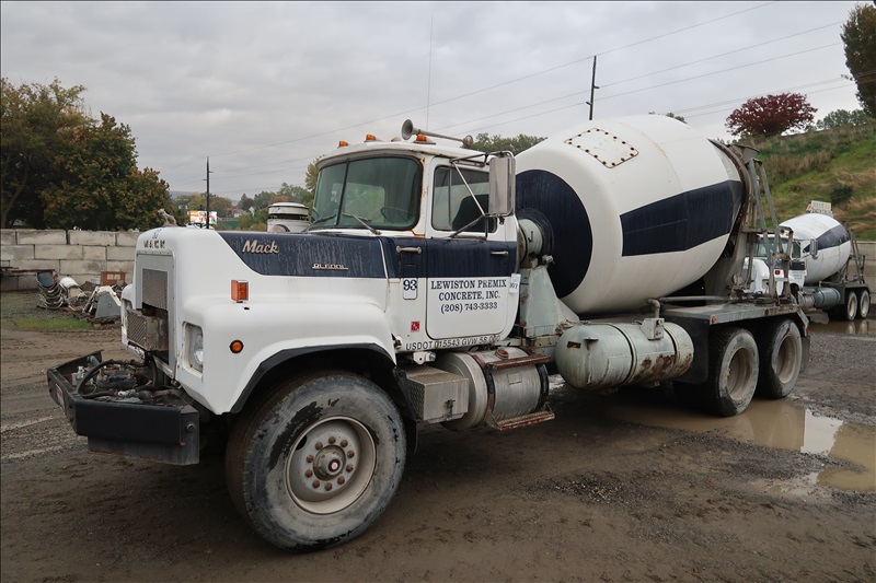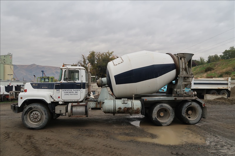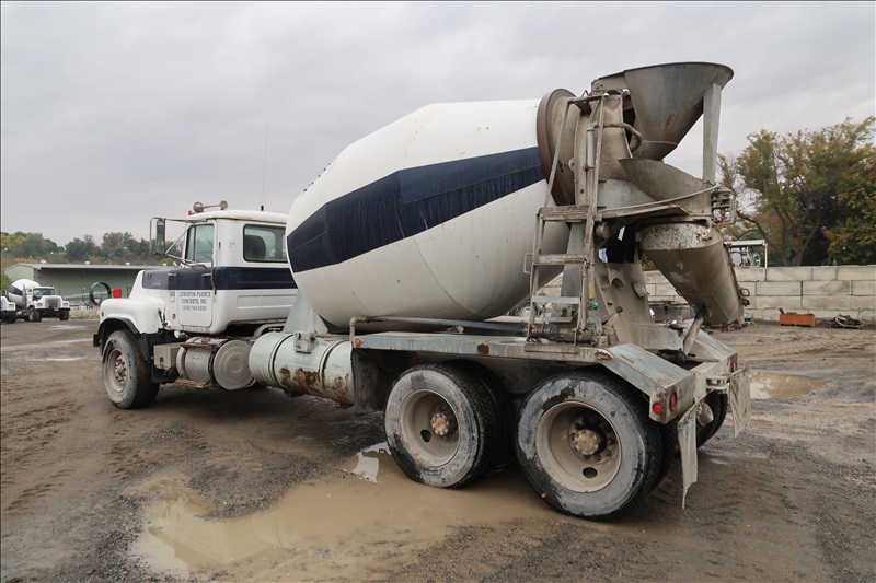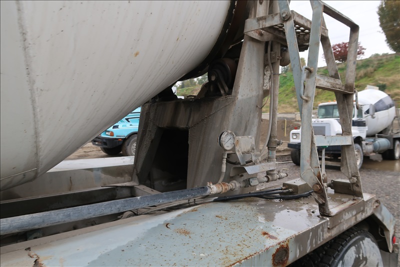 TANDEM AXLE MIXER TRUCK, 6-CYL DIESEL, 5+4, CHALLENGE 8 CU. YD. HYDRAULIC MIXER, BLOCK BEAM SUSPENSION, ALUMINUM FRAME (UNIT #93)
