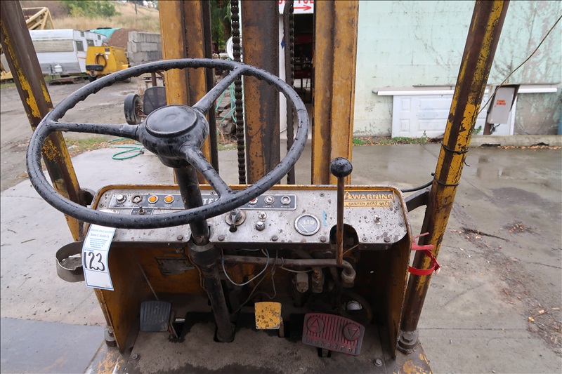 APPROX. 5,000 LB. FORKLIFT, PROPANE, MONOTROL, 281" 2-STAGE MAST W/42" FORKS, RECENT SOLID TIRES, HOUR METER READS:N/A, S/N:N/A