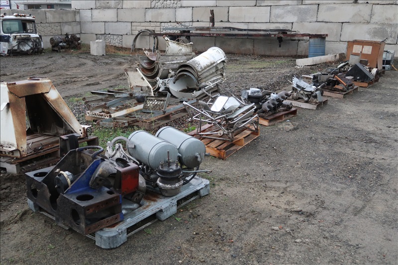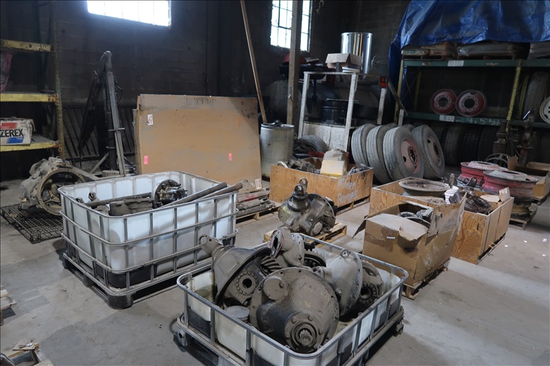 TRANSMISSIONS; REAR ENDS; STEER AXLES; SUSPENSIONS; FRAME PARTS; SPRINGS; AIR CLEANERS; AIR TANKS; TIRES & WHEELS; (2) MACK RL600 HOODS; MACK RS685S CAB; DOORS; FENDERS; KENWORTH 8-BAG SUSPENSION; ALUMINUM TRUCK FRAMES; LARGE QUANTITY OF TRUCK PARTS & ACCESSORIES