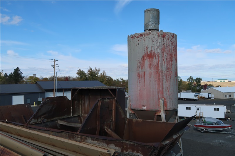 3-COMPARTMENT TYPE 105 TON AGGREGATE BATCHING PLANT W/3-BIN INFEED HOPPER TO BLAW-KNOX MECHANICAL SCALE TO APPROX. 18"X24' TROUGHING ROLL BELT CONVEYOR W/DRIVE, APPROX. 10' DIA. X 25' HIGH 105 TON STEEL CONCRETE SILO TO APPROX. 4-1/2' DIA. X 5-1/2' HANGING WEIGHT SCALE CONVERTED TO ELECTRONIC, ALL SUPPORT EQUIPMENT (SPEC # 22640)(LOCATED IN GRANGEVILLE, ID)
