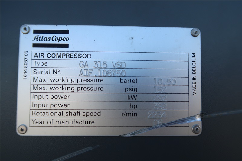 ROTARY SCREW AIR COMPRESSOR, VARIABLE SPEED DRIVE W/SIEMENS 392 HP/1,775 RPM MOTOR (REBUILT IN 2020), BUILT IN COMPRESSED AIR REFRIGERANT DRYER, AIR COOLED (MISSING SOME SIDE PANELS)(LOCATED IN GRANGEVILLE, ID)