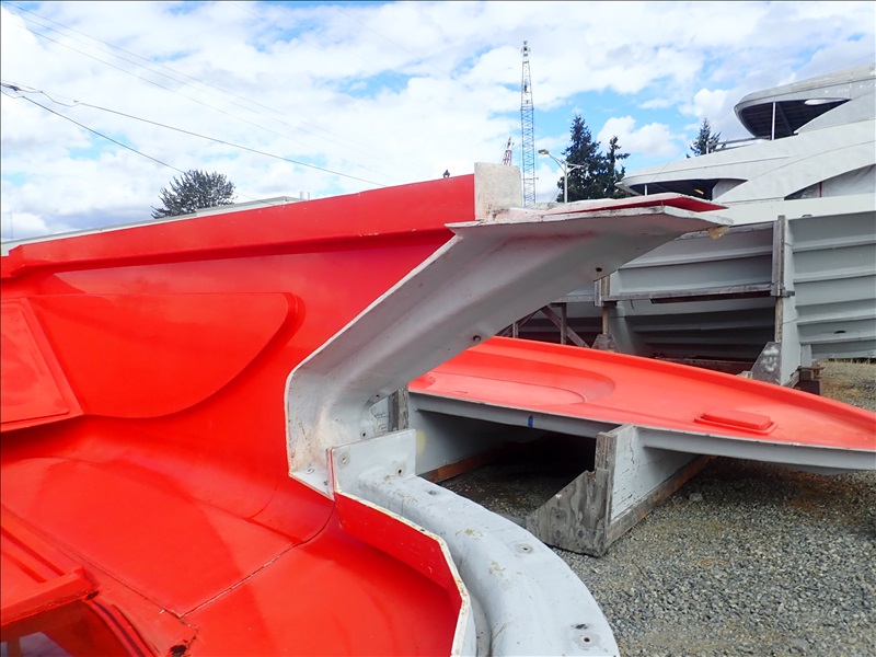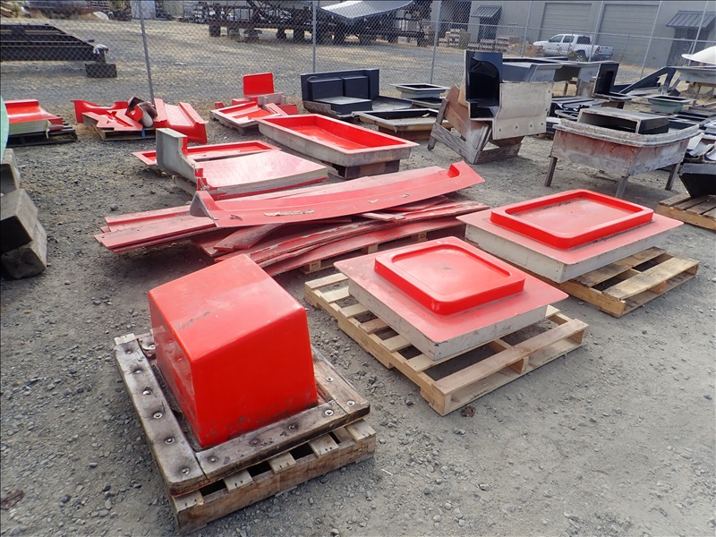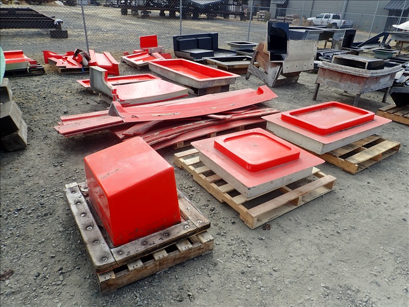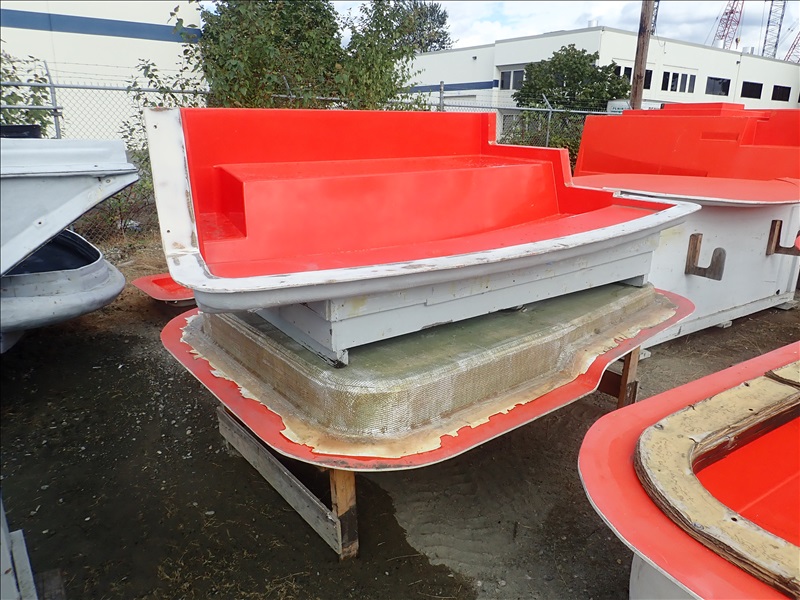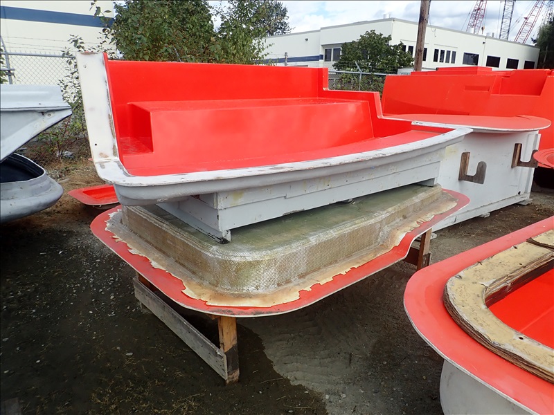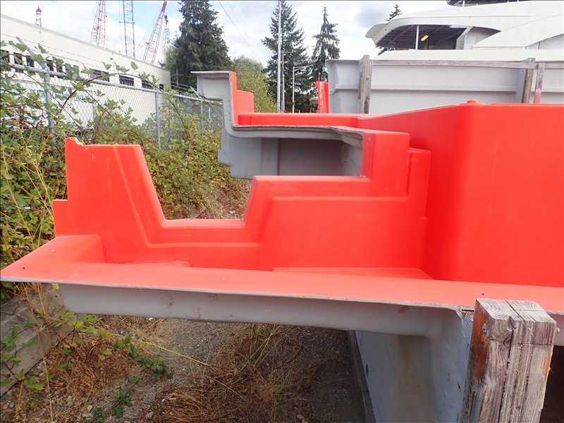 FORMER SAN JUAN YACHTS MOLD FOR SJ48, Hull stbd half, Hull port half, Fly bridge, Sole deck, Pilot house, Transom Seating, 2 shaft tunnel, Fly bridge Console,44 Misc small parts molds