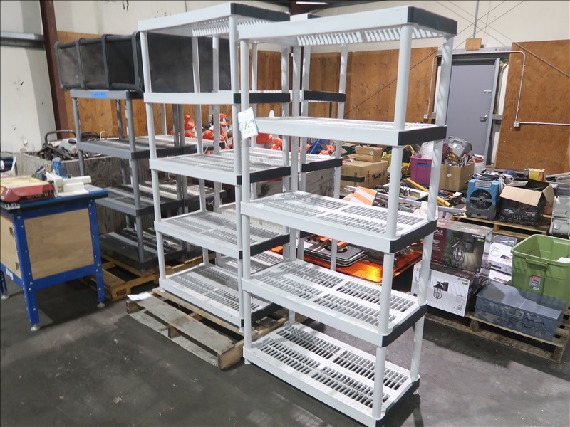 LOT, (3) 18"L X 36"W X 72"H 5-TIER PLASTIC SHELVES
