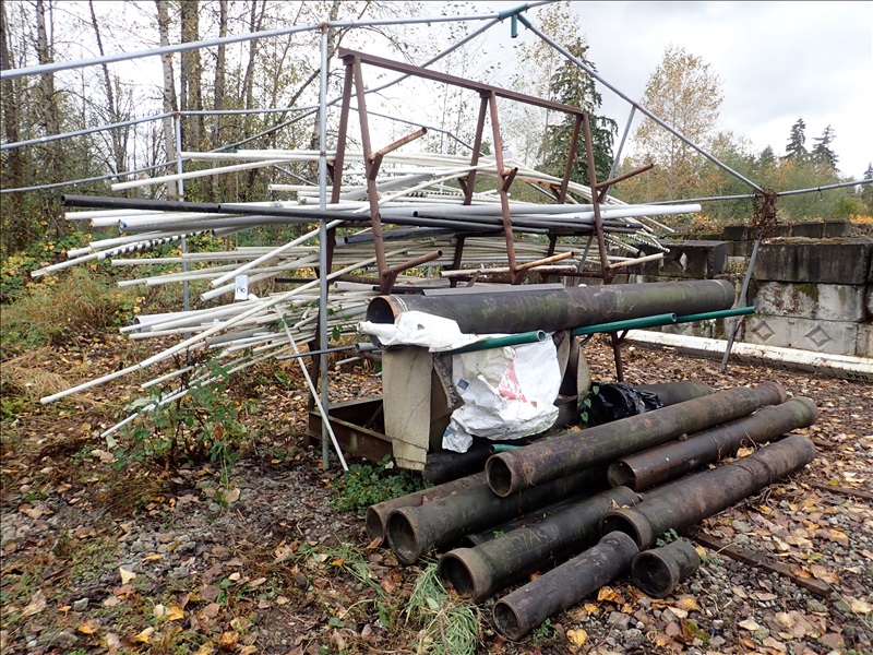 LOT, ASSORTED PVC & METAL PIPE ON THIS RACK W/114"L X 51"W X 10'H STEEL RACK