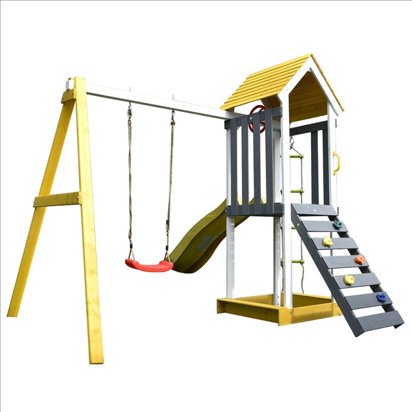 (20)Wooden Playground Swing and Slide set, Color Yellow, White, Grey