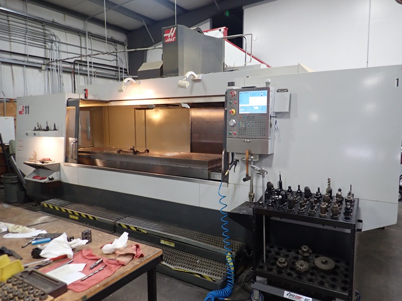 CNC VERTICAL MACHINING CENTER, 28"X120" TABLE, 24-STATION SIDE MOUNT ATC, CHIP AUGER, DUAL WORK LIGHTS, HAAS CONTROLS, S/N: 1094935