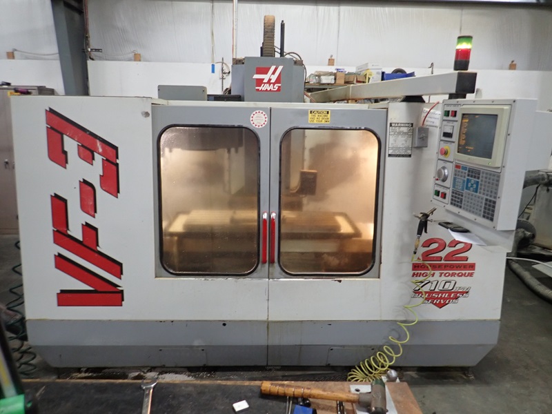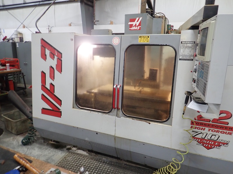 CNC VERTICAL MACHINING CENTER, 18"X48" TABLE, 20-STATION ATC, CHIP AUGER, HAAS CONTROLS, S/N: 9594