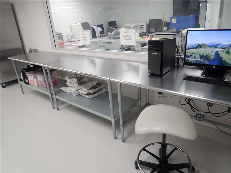 (3) S/S TABLES W/STOOL & LAB SUPPLIES