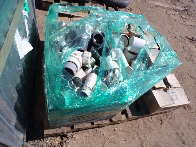 PALLET OF ASSORTED COMMERCIAL GRAY AND WHITE PVC PIPE FITTINGS