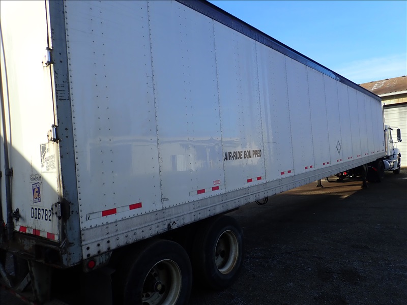 53' T/A VAN TRAILER. SLIDING AXLES, AIR SUSPENSION, AHS HYDRAROLL PNEUMATIC CARGO ROLLERS