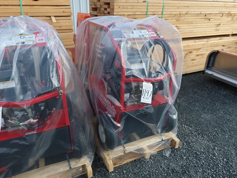 4,000 PSI PORTABLE DIESEL/#2 HEATING OIL FIRED HOT WATER PRESSURE WASHER, 15 HP GAS ENGINE W/HOSE, WAND & TIPS (UNUSED)