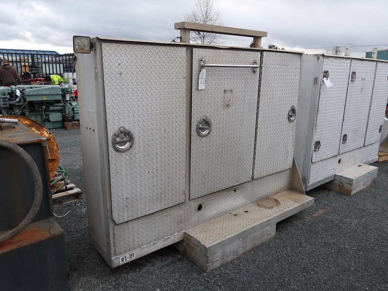 APPROX 18" X 86" X 74" DIAMOND PLATE ALUMINUM TOOL STORAGE CABINET (NO KEYS)