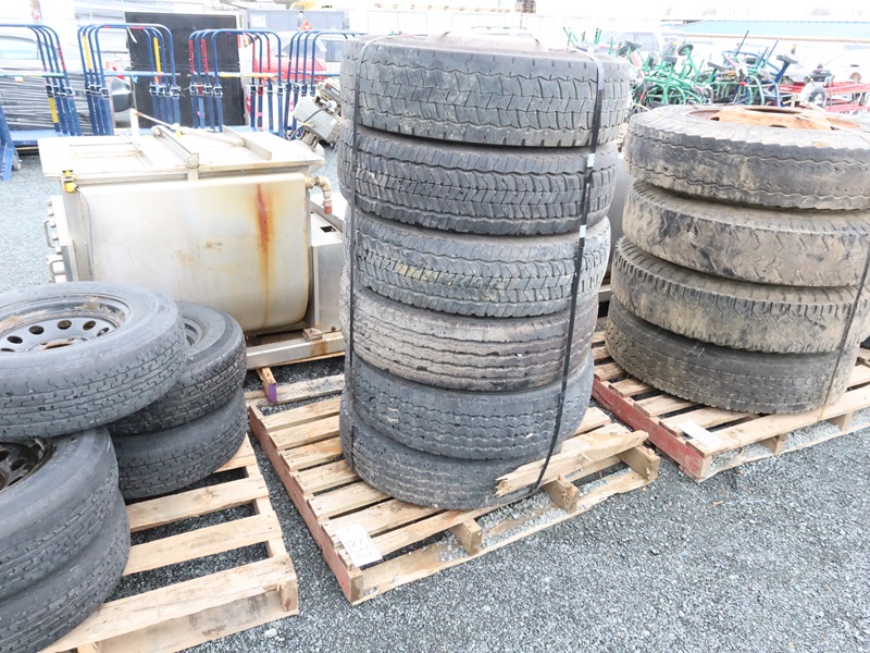 LOT, (6) 225/70R19.5 MOUNTED TIRES ON THIS PALLET