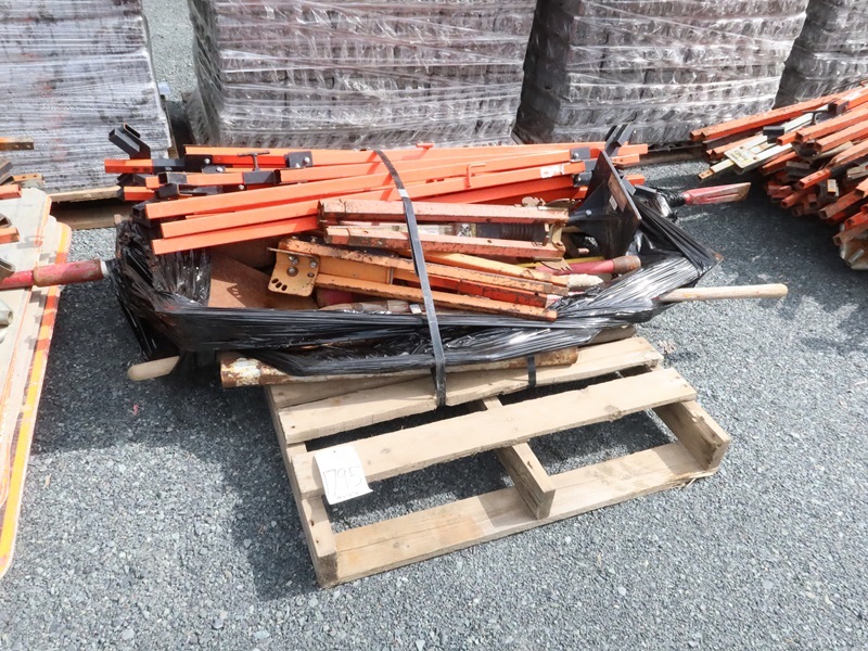 LOT, ASSORTED ROAD SIGN TRIPODS & YARD TOOLS ON THIS PALLET