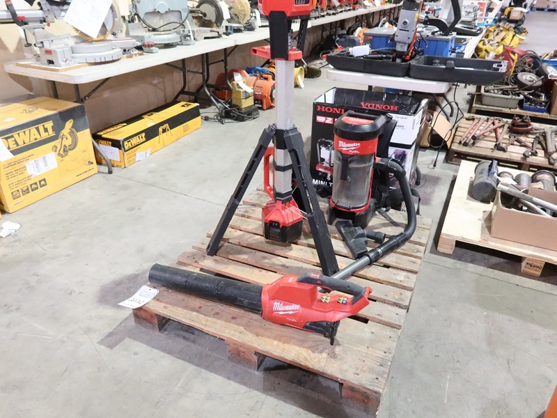 LOT, (1) MILWAUKEE 2724-20 18V CORDLESS BLOWER, (1) MILWAUKEE 18V CORDLESS BACKPACK VACUUM & (1) MILWAUKEE 18V LED WORK LIGHT ON THIS PALLET (NO BATTERIES OR CHARGERS)