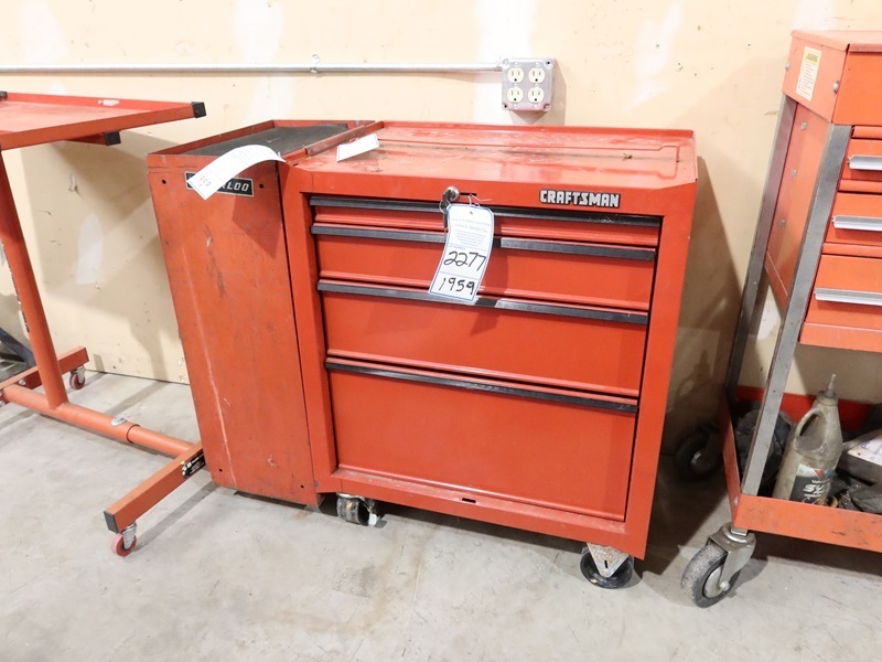 18" X 26-1/2" X 27" 3-DRAWER TOOLBOX ON CASTERS W/11" X 18" X 29" WATERLOO SIDE HANGING CABINET