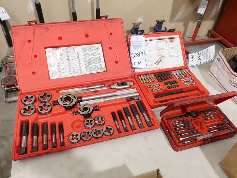 LOT, (1) TD9002A 25-PC TAP & DIE SET, (1) RTD42 42-PC RETHREADING SET & (1) TD2425 TAP & DIE SET (SETS ARE NOT COMPLETE)