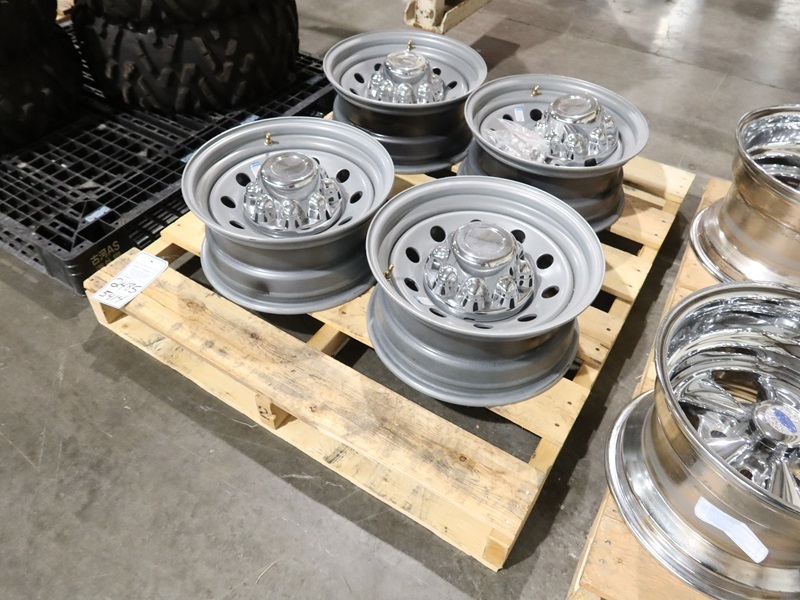 LOT, (4) SRW WHEEL GROUP 16X7J STEEL RIMS ON THIS PALLET (PALLET NOT INCLUDED)