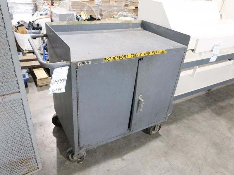 36" PORTABLE DESK W/2-DOOR STORAGE CABINET ON CASTERS