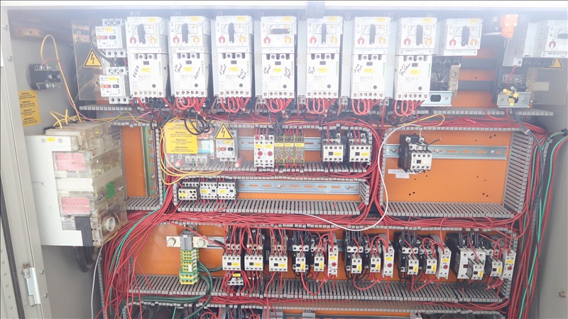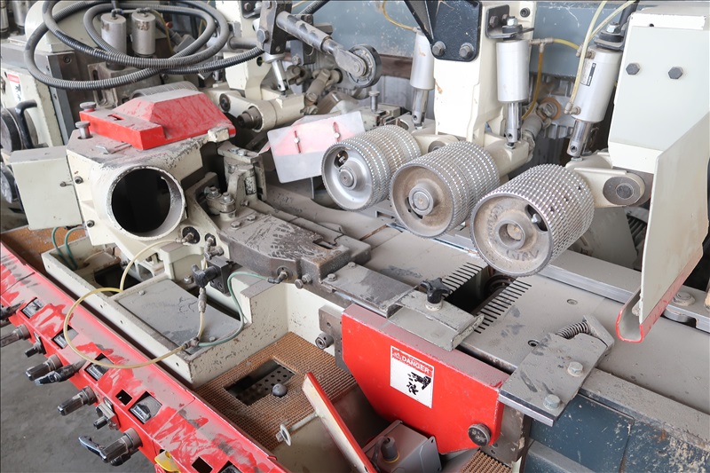 6-HEAD MOULDER, 6-1/2"X9" CAPACITIES, BOTTOM/SIDE/SIDE/TOP/BOTTOM/TOP/BOTTOM HEAD CONFIGURATION, 7-1/2 KW TO 15 KW MOTORS, (7) POWERED FEED ROLLS, SPARE PARTS, ENCLOSURE
