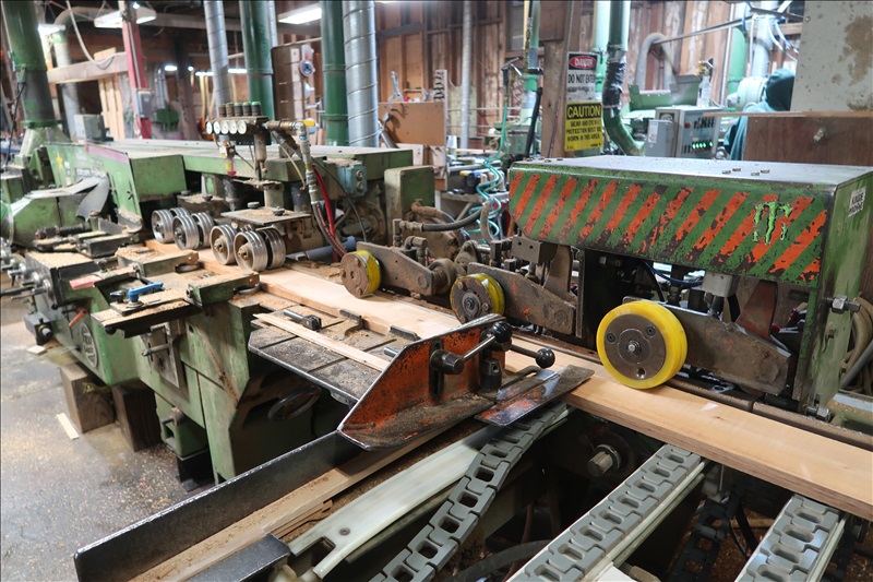 6-HEAD MOULDER, 4-3/4"X8-5/8" CAPACITIES, BOTTOM/SIDE/SIDE/SIDE/TOP/BOTTOM HEAD CONFIGURATION W/APPROX. 7-1/2 HP TO 25 HP MOTORS, 3'X15' TRIPLE HEAD MOULDER FEED TABLE W/H78 POLY CHAIN & HYDRAULIC UNIT, LINEAR GAUGE, CONTROLS, ELECTRICS, SPARE HEADS (MOULDER #2)