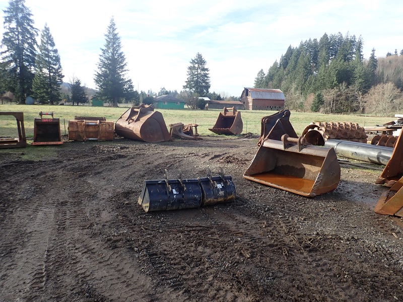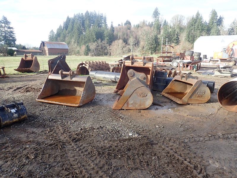 (16) EXCAVATOR BUCKETS, ROLLER PADS, RIPPER & MISC.