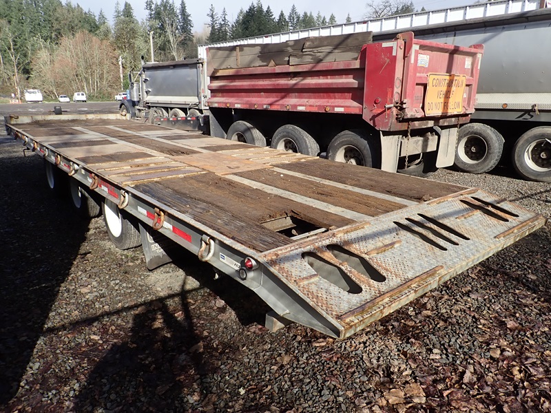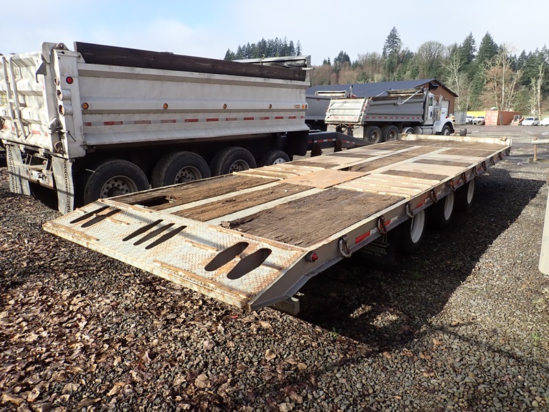 TRI-AXLE TILT BED EQUIPMENT TRAILER, 8' 6'' X 27' DECK (4' STATIONARY), D-RINGS, 215/75R17.5, 9' AXLE SPREAD