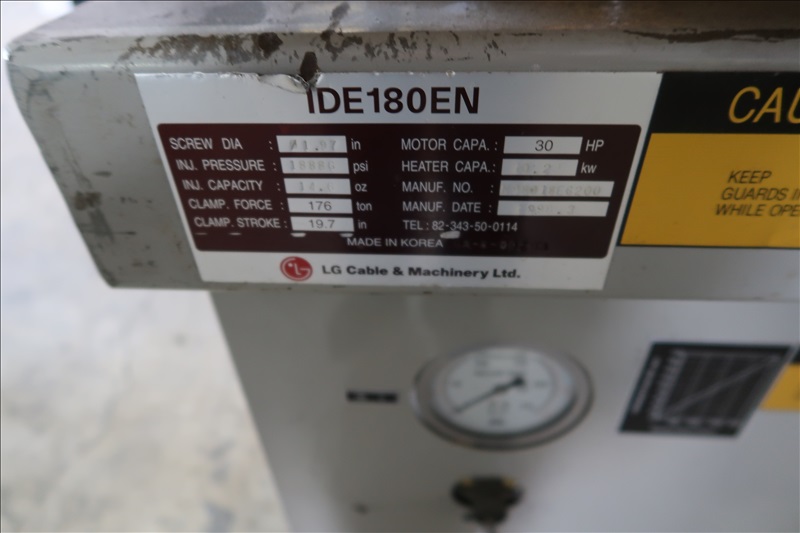 PLASTIC INJECTION MOLDING MACHINE, APPROX. 175-TON, 41.1 OZ. SHOT SIZE, 60 HP, FEED HOPPER