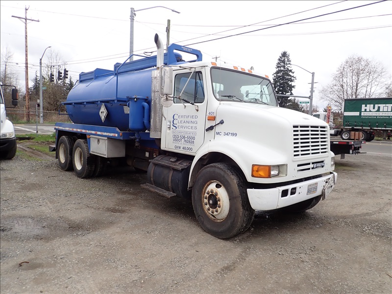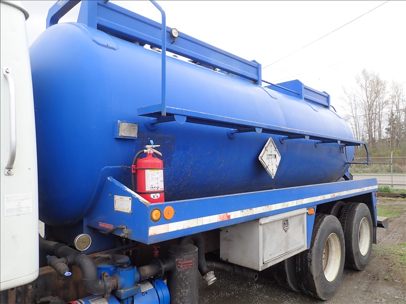 TANDEM AXLE 3,000 GALLON VACUUM TRUCK, DT530 8.7L (5,000 MILES), 13-SPD, FORT WORTH CODED TANK, FRUITLAND 525 CFM PUMP, SPRING SUSPENSION