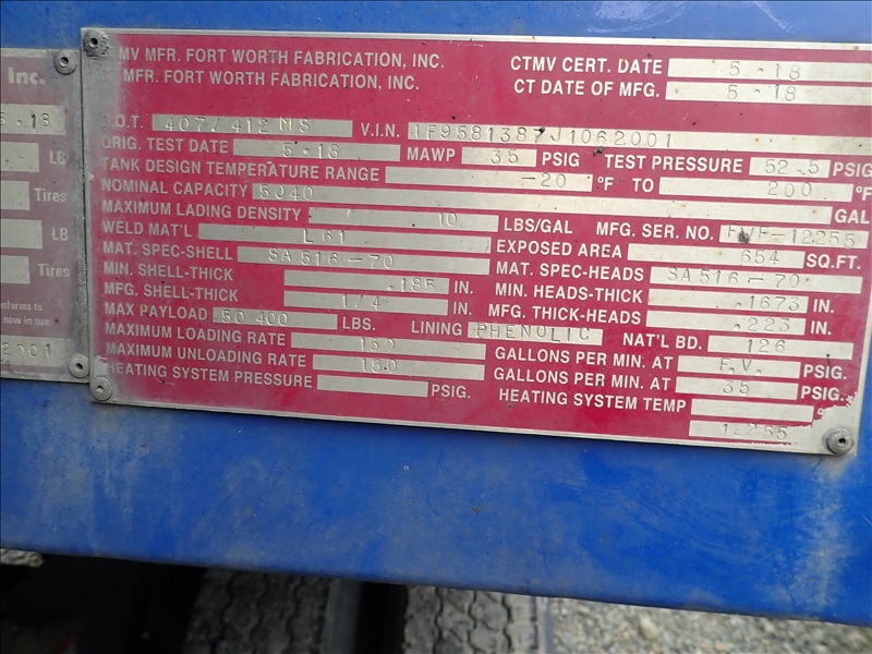 5,040 GALLON CODED VACUUM TANKER TRAILER, SPRING SUSPENSION, FRUITLAND 525 CFM PUMP W/DEUTZ 3-CYL
