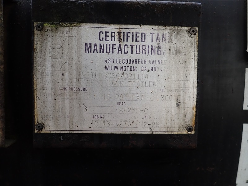 5,040 GALLON NON-CODED VACUUM TANKER TRAILER, SPRING SUSPENSION, FRUITLAND 525 CFM PUMP W/DEUTZ 3-CYL