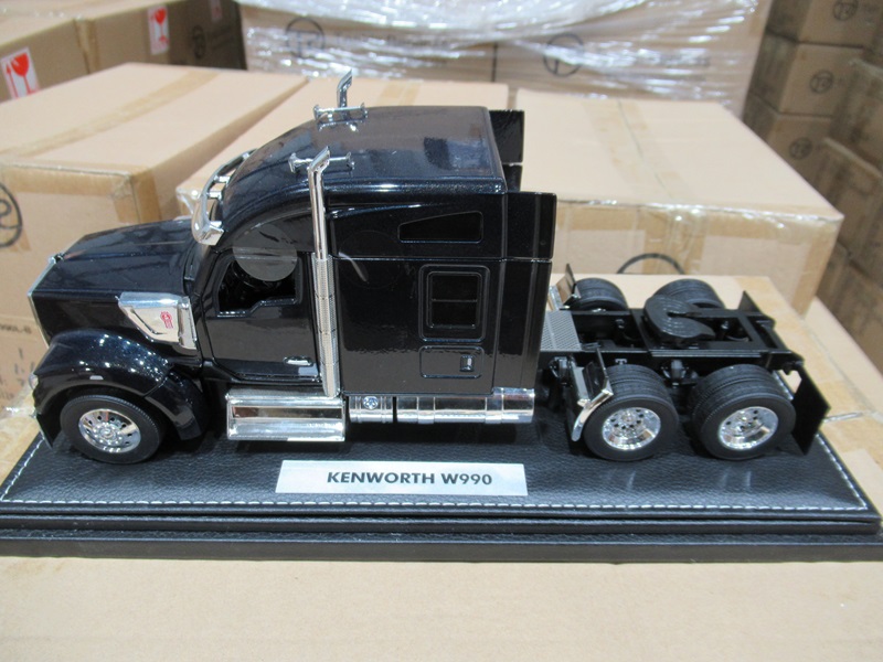 LOT, (3) TONKIN REPLICAS W990L-B KENWORTH W990 SLEEPER CAB DIECAST MODEL TRUCKS (BLACK)