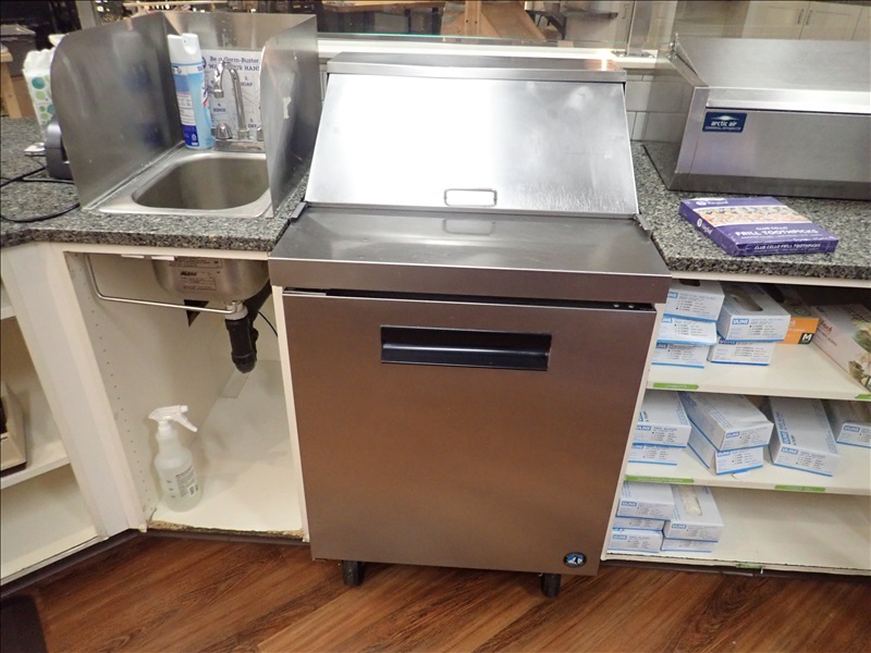 27" SINGLE DOOR REFRIGERATED PREP TABLE ON CASTERS