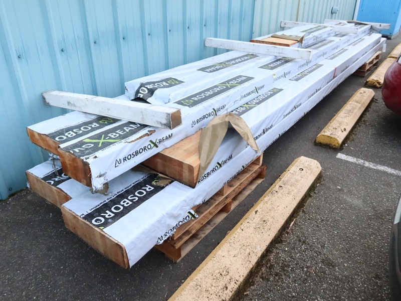 LOT, (8) ASSORTED ROSBORO X-BEAM GLULAMS (RANGE FROM 6' - 14'+ IN LENGTH (LOCATED OUTSIDE)