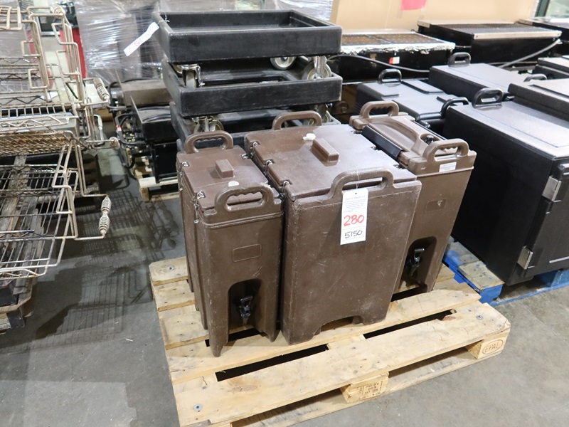 LOT, (2) CARLISLE POLY INSULATED DRINK SERVING CONTAINERS & (1) ICE BIN CONTAINER