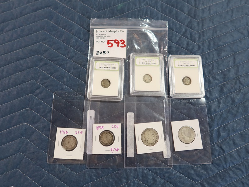 LOT, (7) ASSORTED LIBERTY HEAD COINS, (2) HALF DOLLARS, (2) QUARTERS & (3) DIMES