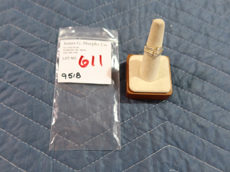 LADIES 14K RING W/CLEAR STONES, SIZE 6 (TESTS POSITIVE FOR DIAMOND)