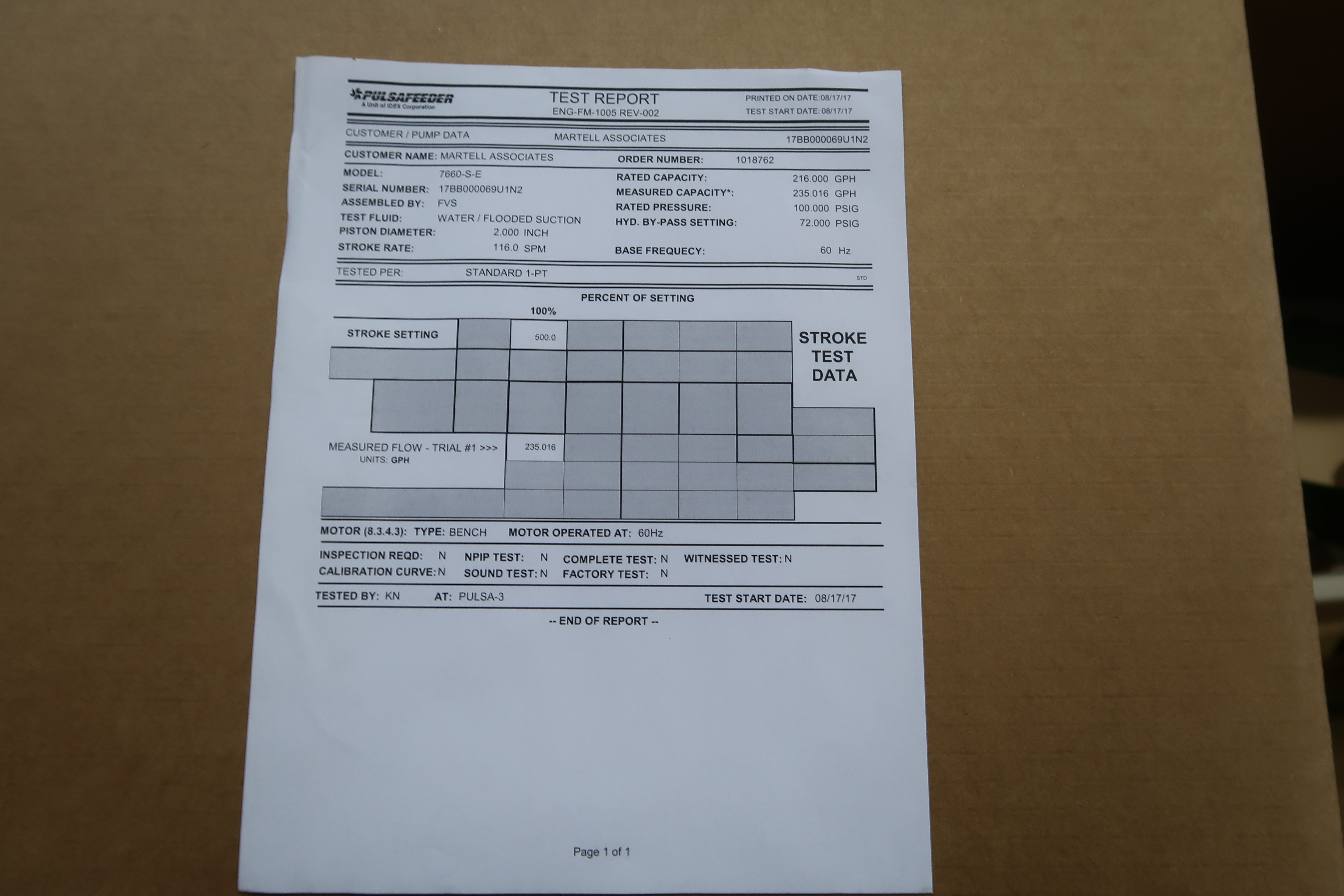 DIAPHRAGM METERING PUMP W/BALDOR/RELIANCE 2 HP MOTOR, 2" PISTON DIA., 116 SPM, 216 GPH