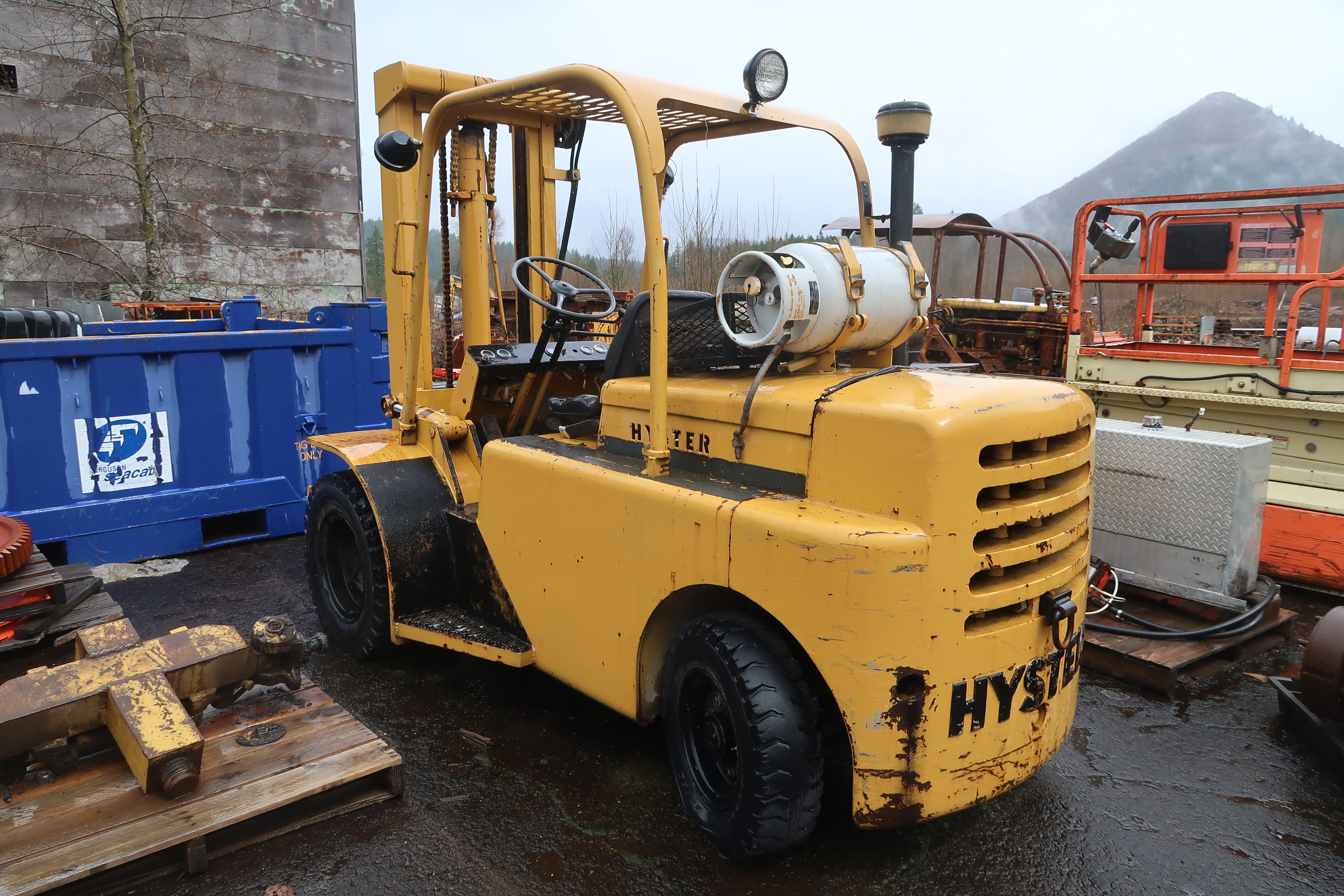 APPROX. 8,000 LB. CAPACITY PROPANE FORKLIFT, MANUAL TRANSMISSION, 2-STAGE MAST, DUAL PNEUMATIC TIRES (NO DATA PLATE)