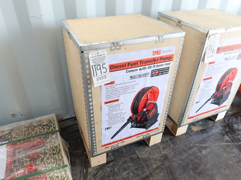 BOLT-ON DIESEL FUEL TRANSFER PUMP W/49' HOSE REEL (UNUSED)