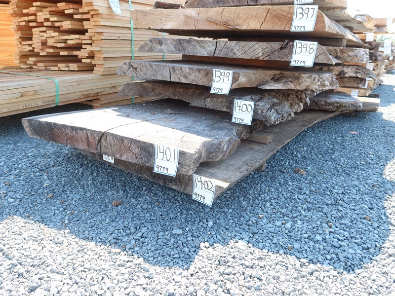2-1/2" X 107" 3 YR AIR DRY LIVE EDGE WALNUT SLAB (LARGE END 28", SMALL END 15", MEASUREMENTS ARE APPROXIMATE)