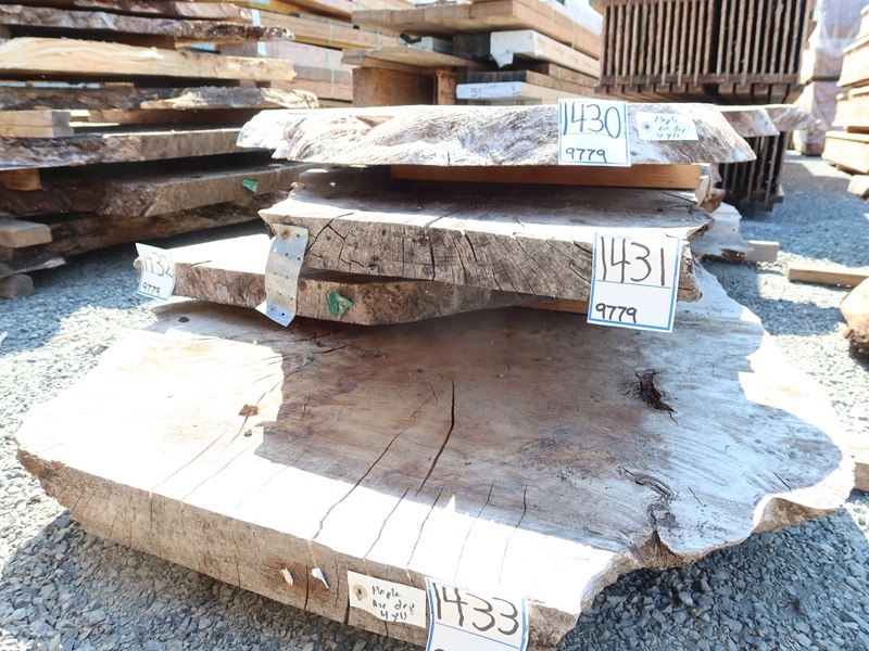 2-1/2" X 79" 4 YR AIR DRY LIVE EDGE MAPLE SLAB (LARGE SIDE 19", SMALL END 10", MEASUREMENTS ARE APPROXIMATE, NO REMOVAL UNTIL THURSDAY, JUNE 22ND)