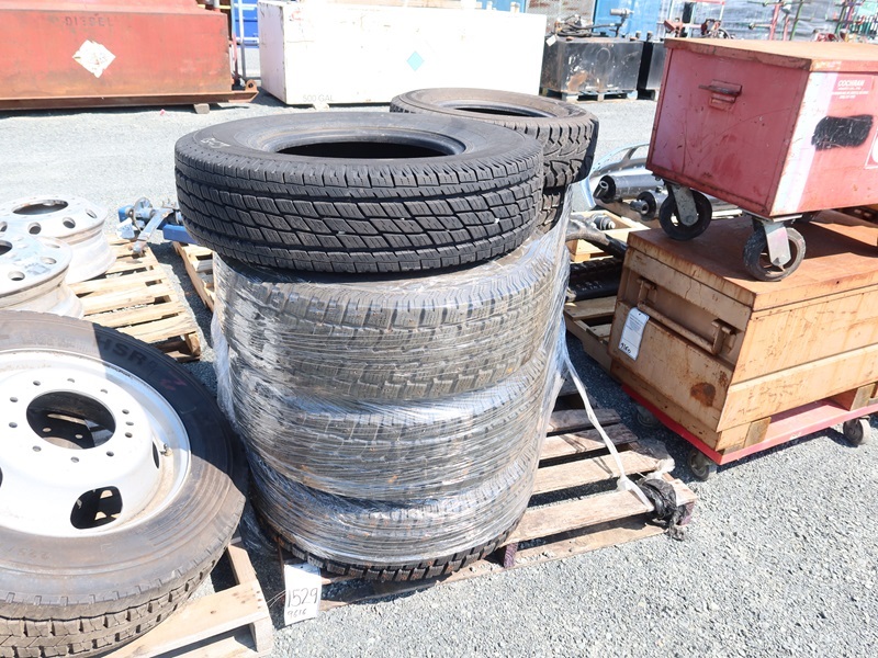 LOT, (6) WINTER CAT RADIAL SST LT245/75R16 MOUNTED STUDDED TIRES, (1) HANKOOK WINTER I-PIKE P205/75R14 STUDDED TIRE & (1) TOYO H/T OPEN COUNTRY LT235/85R16 TIRE ON THIS PALLET
