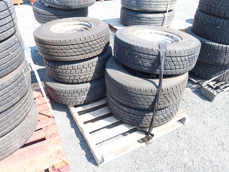 LOT, (4) TOYO H/T OPEN COUNTRY LT245/75R16 MOUNTED TIRES & (2) WINTER CAT RADIAL SST LT245/75R16 MOUNTED STUDDED TIRES ON THIS PALLET