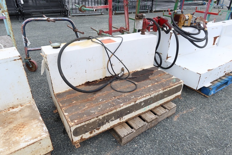 31"L X 54"W X 25"H L-SHAPED TRANSFER TANK W/TUTHILL 1200C 12V PUMP, HOSE & NOZZLE