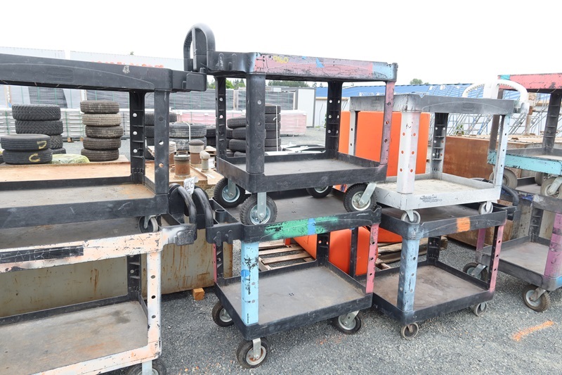 LOT, (2) RUBBERMAID 2-TIER POLY CARTS ON CASTERS