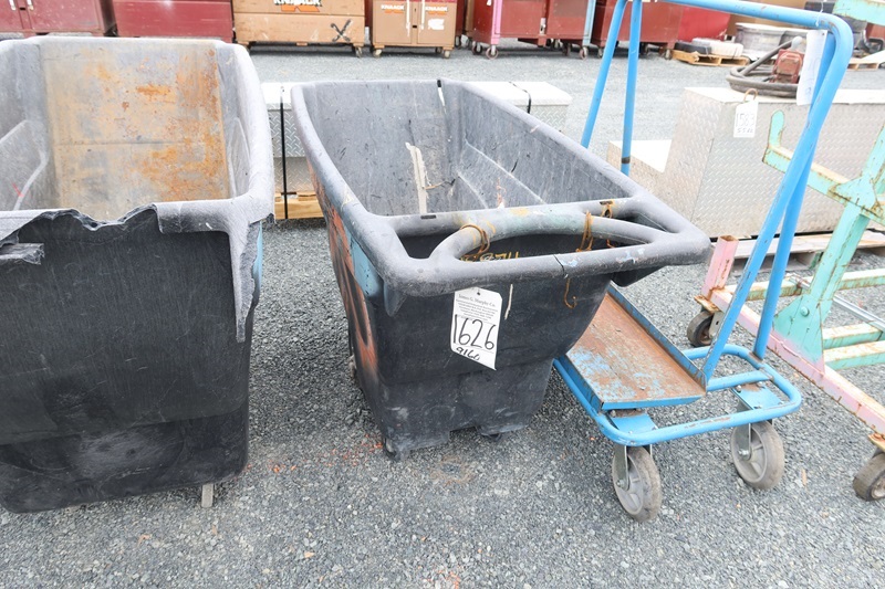 57"L X 25"W X 34"H POLY TIP CART ON CASTERS (NEEDS REPAIR)