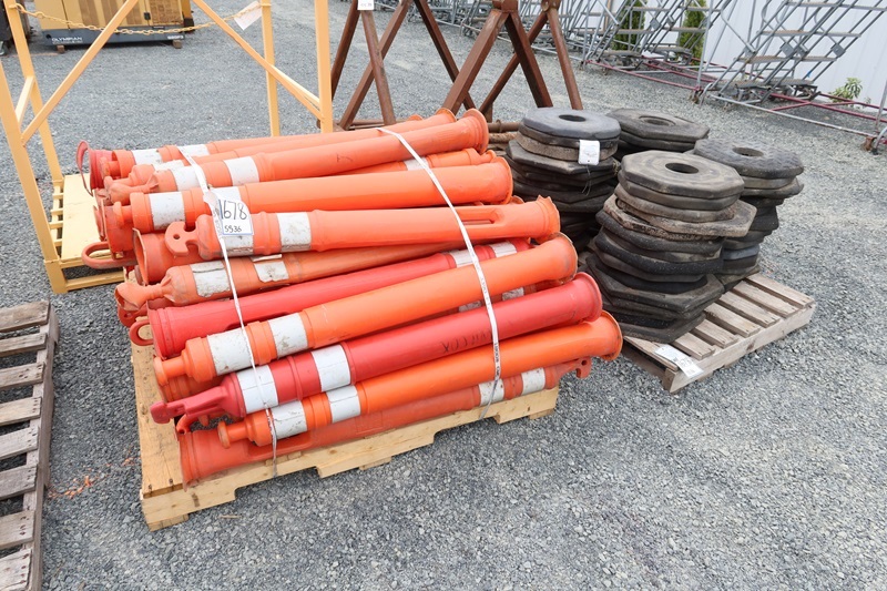 LOT, ASSORTED REFLECTIVE CANDLESTICK CONES W/BASES ON THESE (2) PALLETS