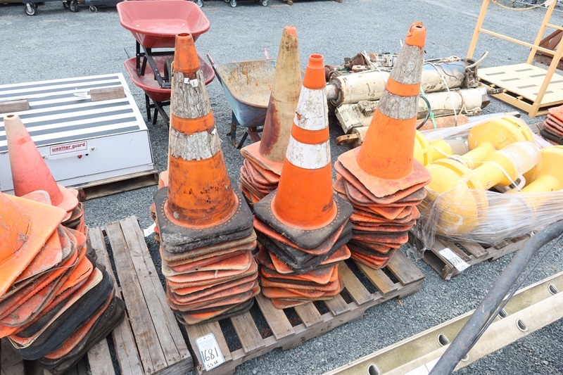 LOT, ASSORTED REFLECTIVE TRAFFIC CONES ON THIS PALLET